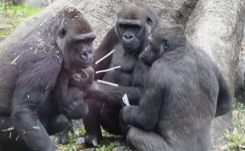 This adorable video captures a tender family moment within Haoko’s gorilla troop — when Komomo, a young female gorilla, lovingly takes care of her baby sister Sumomo. As Sumomo explores …